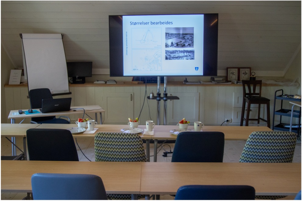 Møterommet er utstyrt med storskjerm + wifi og har plass til 25 personer. Dagspakker inklusive lunsj og/eller middag kan avtales. Annen service avtales. Leie Kr. 4600.- i nye oppdaterte møterom.